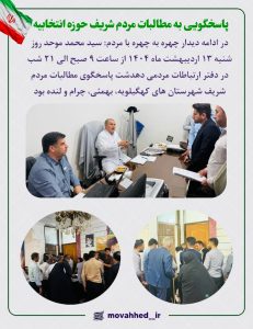 دیدار چهره به چهره نماینده مردم کهگیلویه با مردم